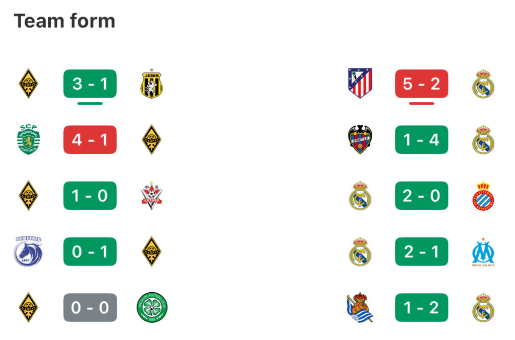The Kazakh side sit second in their domestic league and have won their last three, though widen it to all competitions and it’s three wins from seven – though that factors in two draws with Celtic and an eventual shootout win to reach the league phase in Europe. Real Madrid’s humiliation at Atlético over the weekend leaves them one point off Barcelona in LaLiga, having won seven straight prior to that beating.