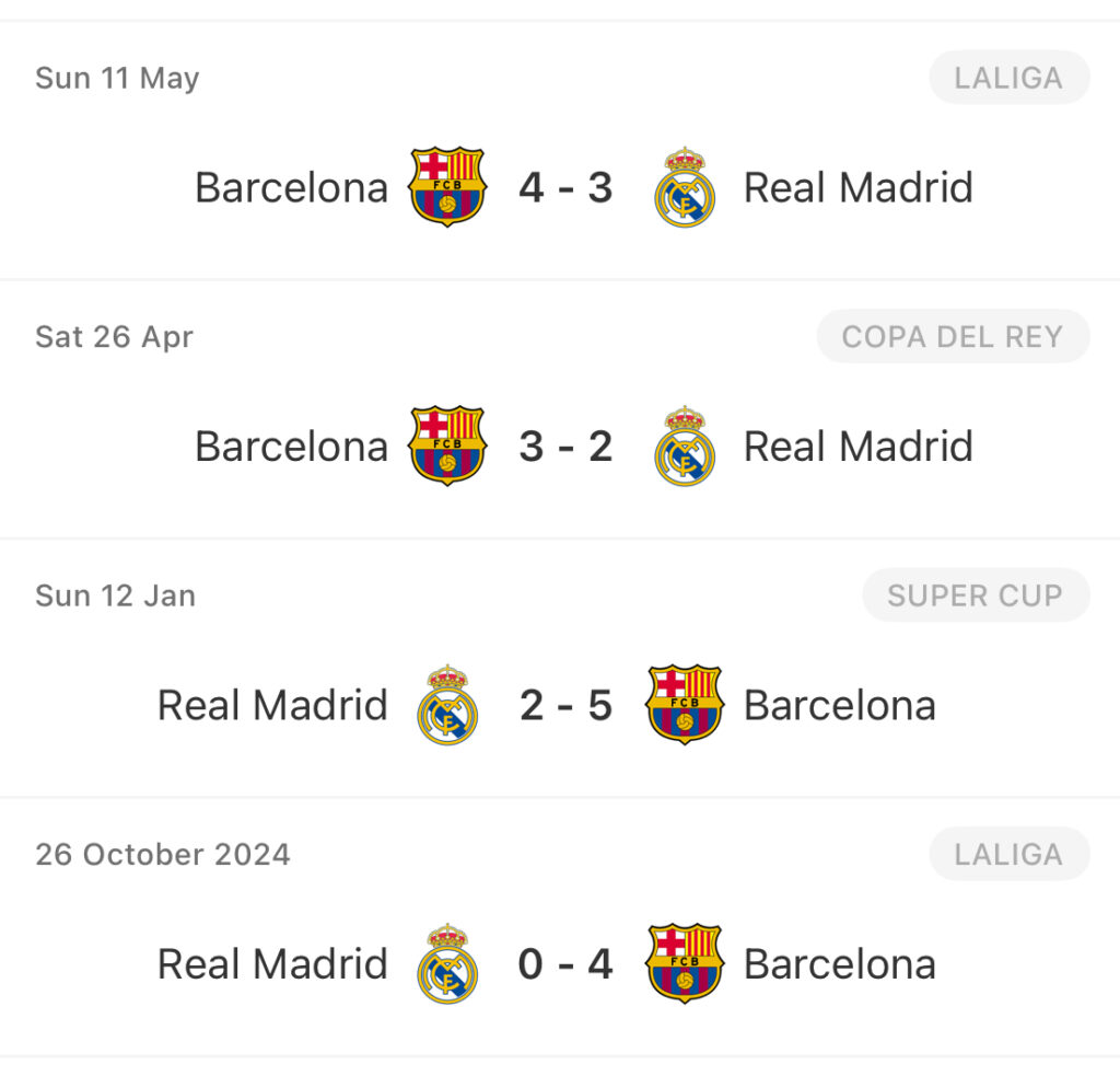 The last time the Blaugrana won four consecutive Clásicos was between 2008 and 2010, when a certain Pep Guardiola was their head coach. They capped that streak off with a fifth win – the famous 5-0, which remains the most one-sided meeting between these two teams in the 21st century.