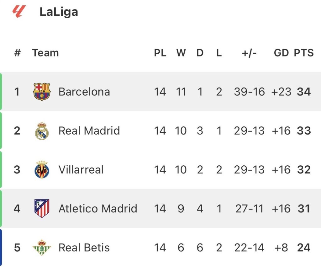 Atlético’s away form has been their Achilles heel this term, winning just twice on the road. At home, no side has picked up more points, and they are yet to suffer a defeat.