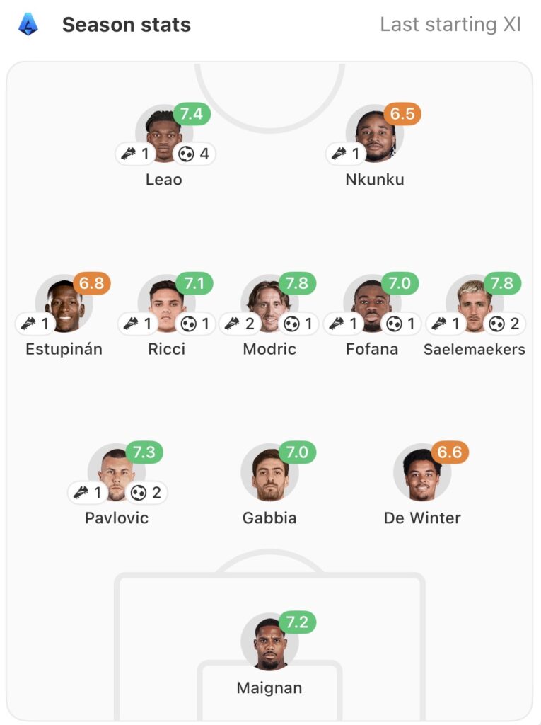 AC Milan’s typical formation this season