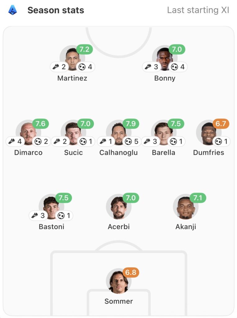 Inter’s typical formation this season