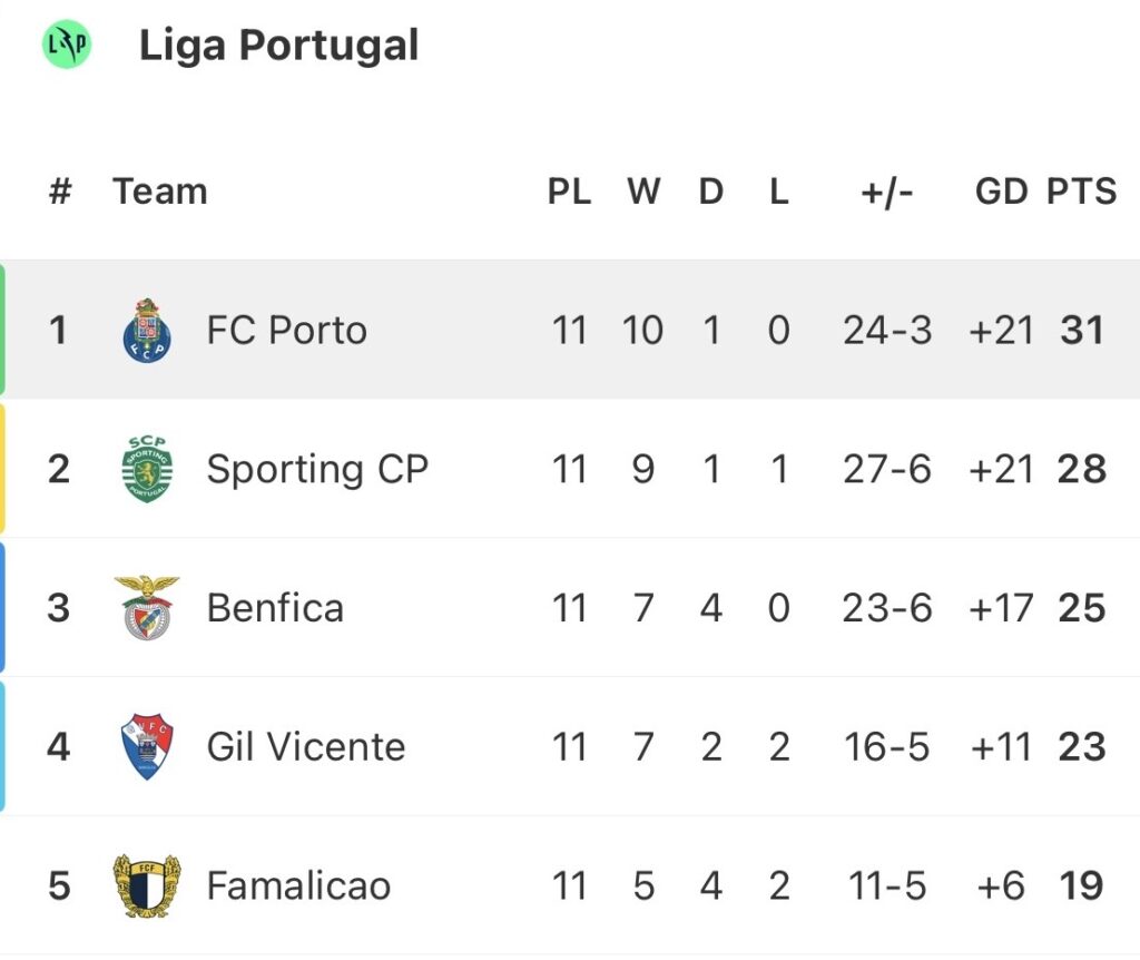 Goalkeeper Diogo Costa has played a big part also. He ranks third in the Liga Portugal for save percentage (83.3%), and obviously, no other ‘keeper has conceded as few goals.