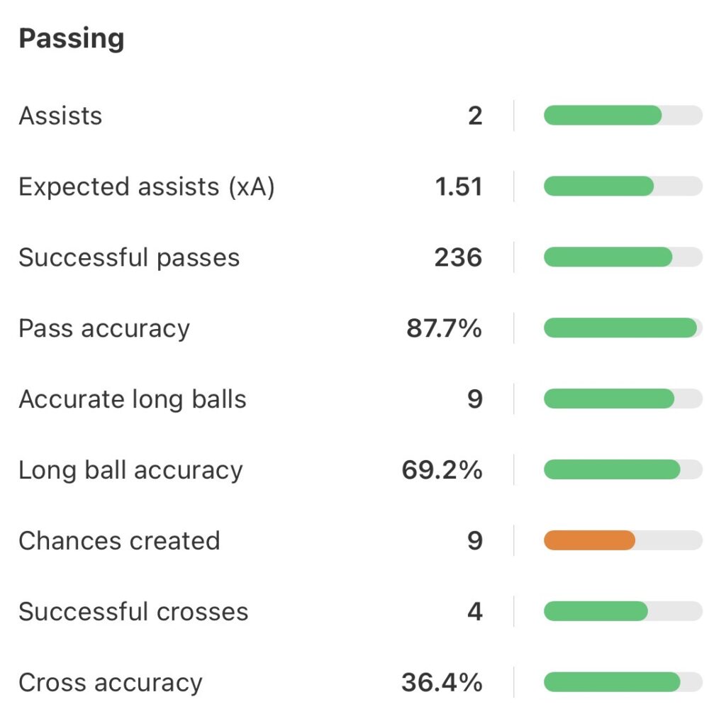 Karl’s passing numbers, Bundesliga games only