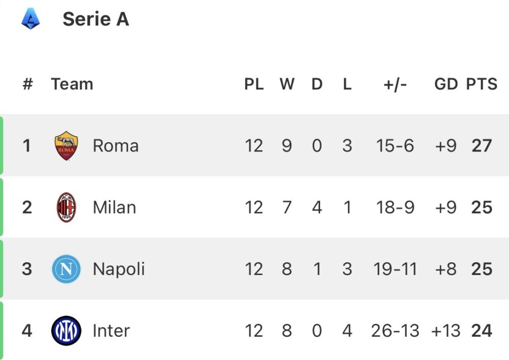 It’s been ten years since Roma sat at the top of the Serie A table after 12 games, and fans are daring to dream. Speaking after their 3-1 win over Cremonese on Sunday (November 23), Gasperini tried to temper those dreams