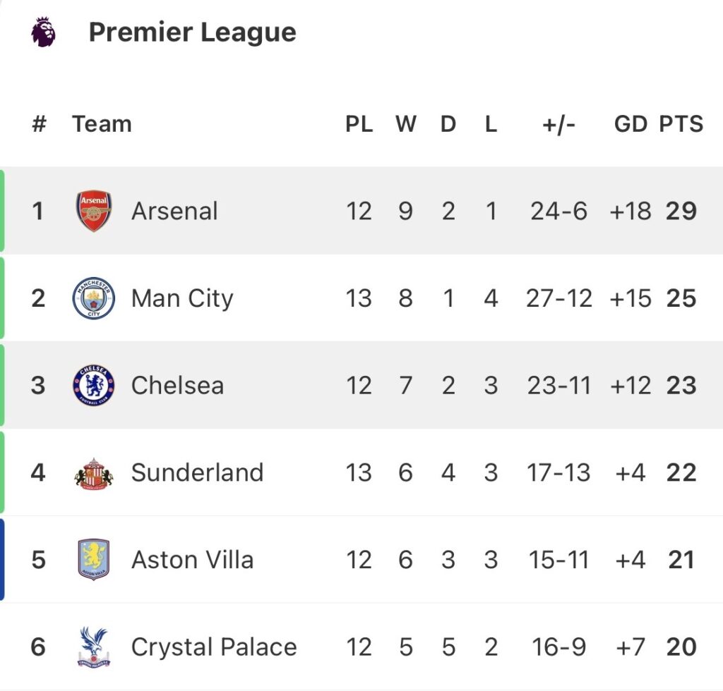 The top six before Sunday’s games