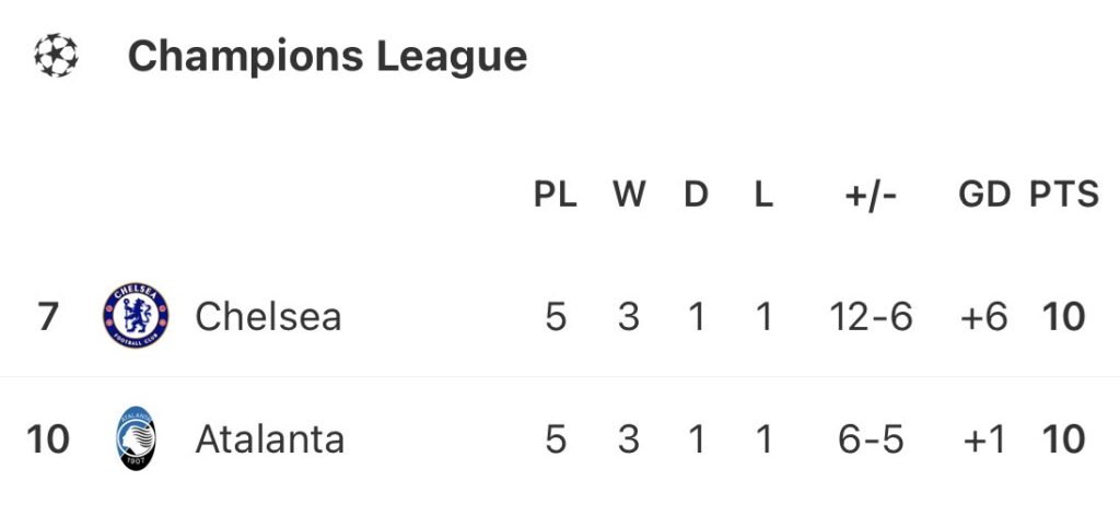 La Dea have felt the departure of long-term coach Gian Piero Gasperini keenly (he is now at Roma), but their European form hasn’t been too bad. Atalanta sit level on points with Chelsea (10), having already beaten Club Brugge, Marseille, and Eintracht Frankfurt. Enzo Maresca shouldn’t underestimate them.
